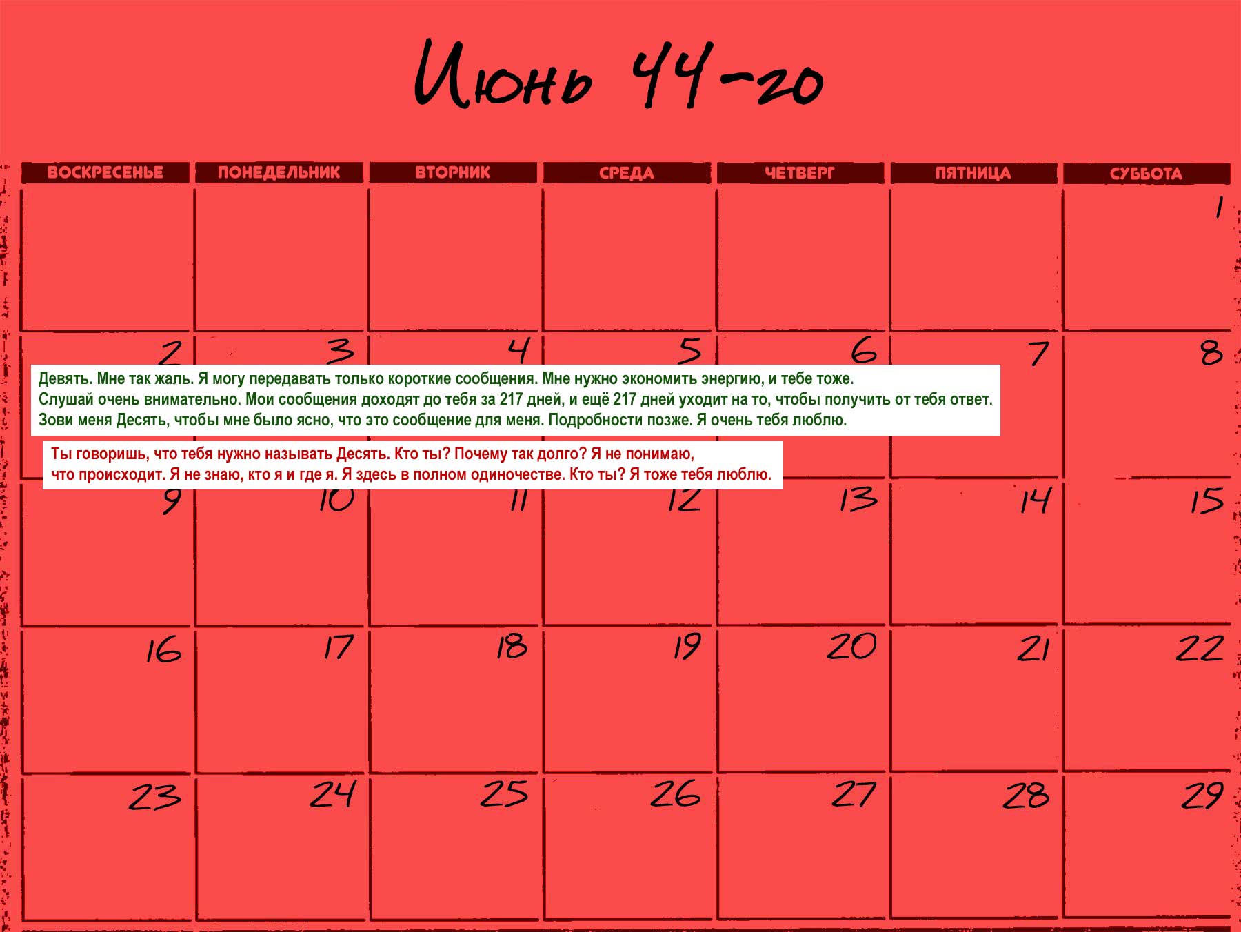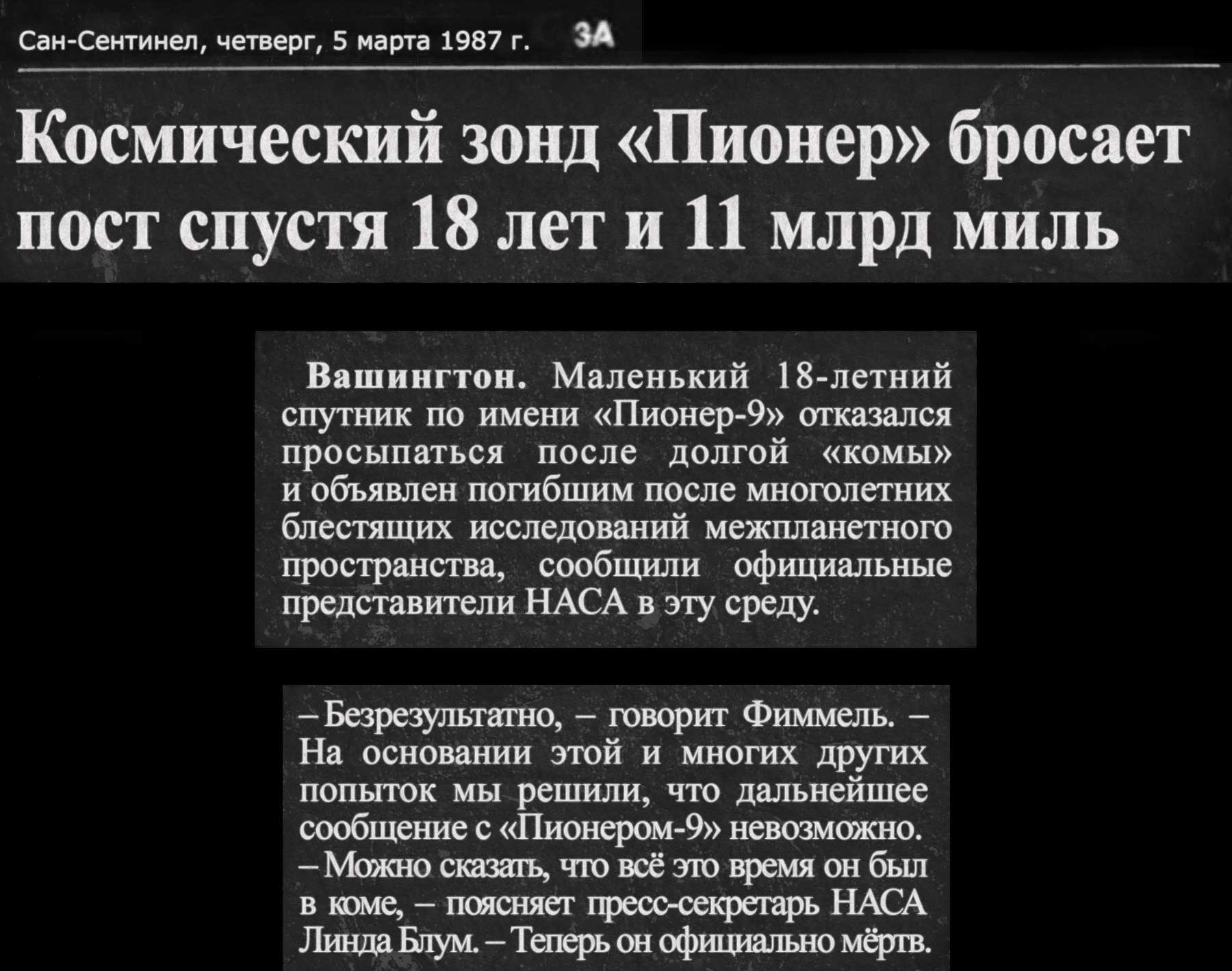 NINE: Вот почему ты зовёшь меня Девять. Потому что я на «Пионере-9». А ты на «Пионере-10»? Где ты? Мы поэтому так далеко друг от друга? Потому что я в космосе?