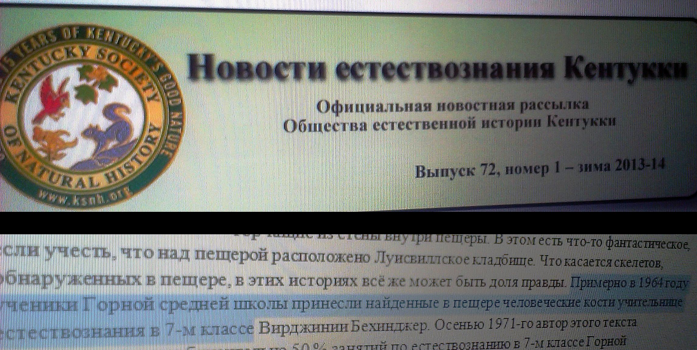 ED: Так вот, вы стоите рядом с южной развилкой Берграсс-крик, который течёт по всему Луисвиллу. Я сижу в пещере, которая называлась бы пещерой Одиннадцати Джонсов, если бы кто-нибудь о ней ещё помнил, но о ней никто не помнит.