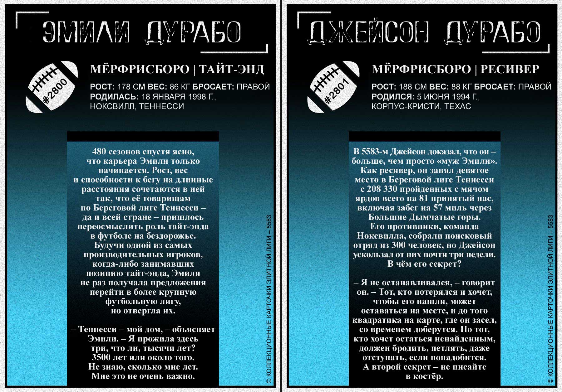 JASON: Да наверняка можно было бы поменять фамилию обратно. Если бы я ещё помнил, когда это случилось. Значит так, фамилия моего папы – Дуразо, соответственно, и я точно был Дуразо, когда родился. Но на моей первой футбольной карточке – уже Дурабо. А это было в 5583-м. Так что, видимо, где-то в те годы.