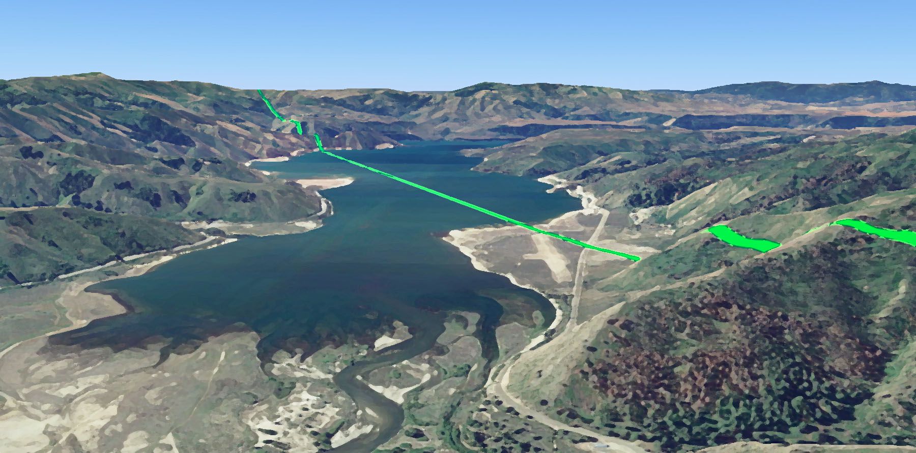 ROGER: Водный футбол! На этом поле есть несколько крупных участков, полностью покрытых водой. Вот, например, если посмотреть, э, есть одно такое водохранилище в Айдахо, которое просто поглотило две с половиной мили нашего поля.